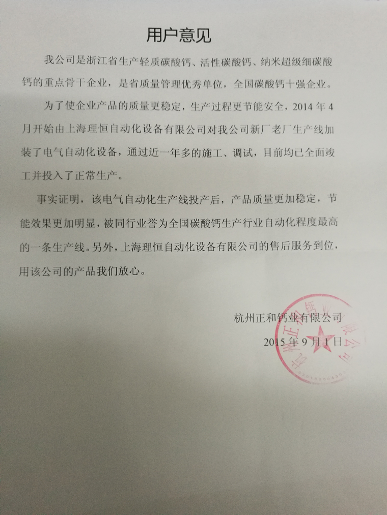 國(guó)內(nèi)絕大部分碳酸鈣生產(chǎn)企業(yè)的生產(chǎn)目前都還處于高能耗低產(chǎn)出和嚴(yán)重污染環(huán)境的現(xiàn)狀。理恒電氣自動(dòng)化公司近年為浙江杭州某碳酸鈣生產(chǎn)企業(yè)提供了一套自主知識(shí)產(chǎn)權(quán),年產(chǎn)10萬(wàn)噸的自動(dòng)化裝置,不但大大穩(wěn)固了生產(chǎn)工藝,全程實(shí)現(xiàn)了自動(dòng)化磨漿生產(chǎn),向除塵環(huán)保生產(chǎn)也邁出了可喜一步,而且明顯降低了勞動(dòng)強(qiáng)度,實(shí)現(xiàn)了資源的綜合利用。目前,由理恒自動(dòng)化公司為該企業(yè)施工的第二條生產(chǎn)線也已投入使用。