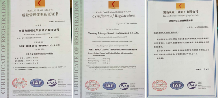 12月4日,我司生產(chǎn)基地南通市理恒電氣自動化有限公司獲得國家有關(guān)質(zhì)量體系認(rèn)證管理機構(gòu)頒發(fā)的保持認(rèn)證注冊資格通知書。證書確認(rèn)我司生產(chǎn)基地符合工業(yè)自動化控制柜生產(chǎn)和銷售的管理體系GB/T19001-2016/ISO9001:2015標(biāo)準(zhǔn)。