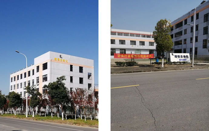 藍(lán)天襯托下的公司科研大樓和公司大門
