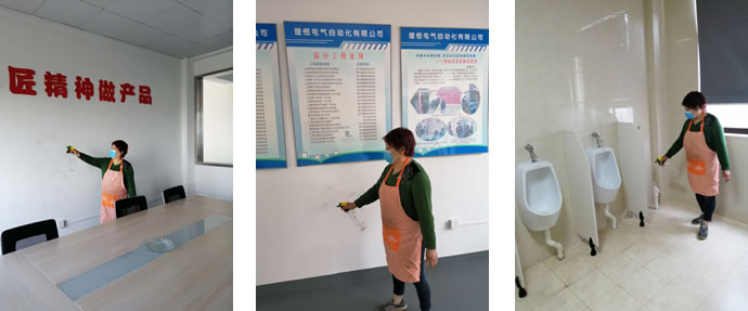 公司保潔員每天堅(jiān)持對(duì)公司內(nèi)部的會(huì)議室、走廊通道及衛(wèi)生間等場所噴灑酒精消毒,確保公共環(huán)境的衛(wèi)生