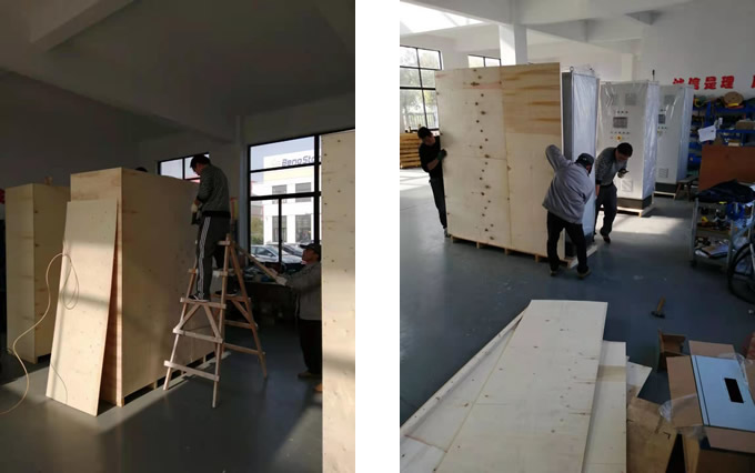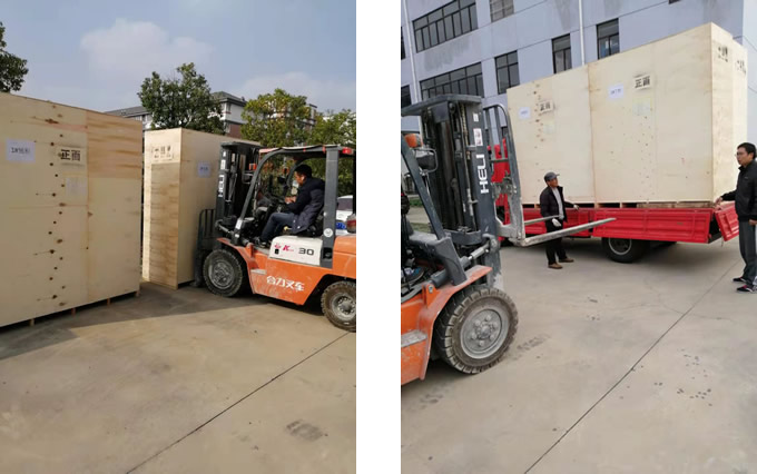 圖為正在裝車發(fā)運至廣州大陵河的PLC雙拼柜